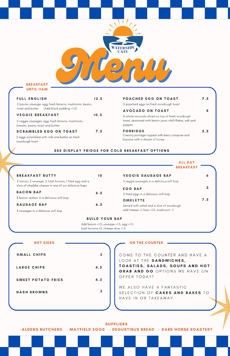 Waterside Cafe boasts an impressive breakfast menu that caters to both hearty appetites and lighter choices. Dive into the full English breakfast at just £12.50, featuring a sumptuous array of locally sourced ingredients that will ignite your taste buds. For a more delicate option, the avocado on toast at £8.00 offers a perfect balance of creamy texture and fresh flavors, while the poached egg on toast (£7.50) is simply irresistible. Breakfast is served until 11 am, ensuring you have ample time to savor these delicious creations.